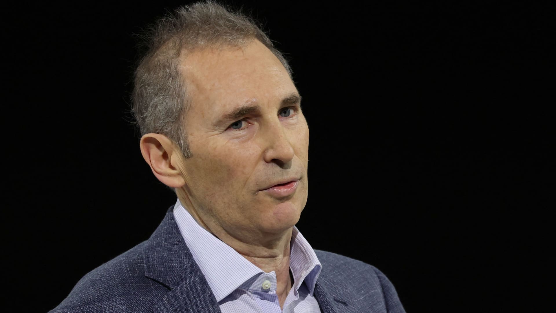 Amazon CEO Andy Jassy looks on during an Amazon Devices launch event in New York City, U.S., February 26, 2025. REUTERS/Brendan McDermid