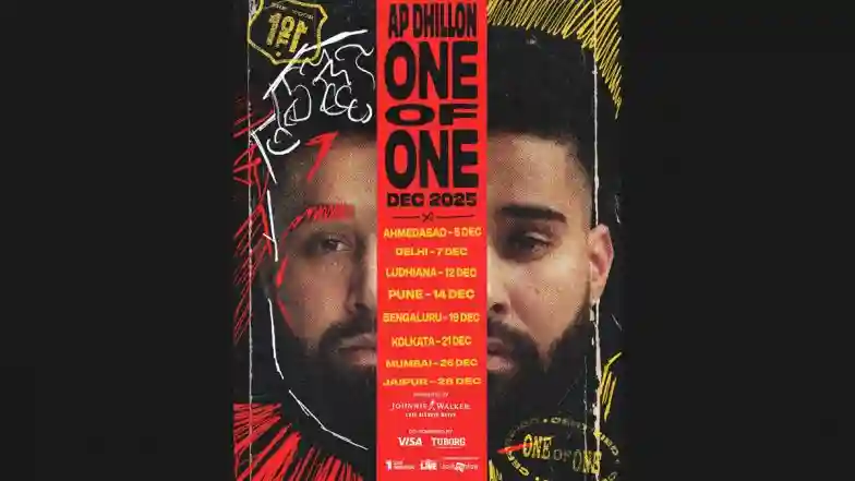 AP Dhillon’s ‘One of One’ India Tour 2025, touted as his most ambitious tour to date and marking his third run in India, is set to kick off in December 2025. Produced and promoted by Team Innovation and BookMyShow Live, the live entertainment experiential division of BookMyShow in collaboration with Live Nation, this music tour will traverse Delhi NCR, Ludhiana, Pune, Ahmedabad, Kolkata, Mumbai, Bengaluru and Jaipur. ‘Without Me’: Punjabi Musician AP Dhillon Shares Unusual Course of His New Track (Watch Video).