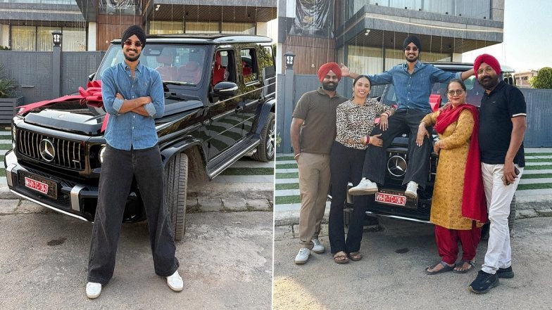 Fresh from a successful T20I series in Australia, the India national cricket team pacer Arshdeep Singh flaunted his newly purchased Mercedes-Benz G-Wagon via a post on his Instagram account. Singh shared glimpses of his G-Wagon, where he, along with his family members, could be seen posing with the luxury SUV. Reportedly, Singh’s Mercedes-Benz G-Wagon is the top-end variant worth INR 4.5 crore, which is the most sought-after by celebrities. Fans can check out Arshdeep’s post below. Rohit Sharma Buys New Tesla Electric Car, Indian Cricketer Chooses Special Number Plate ‘3015’ Based on Daughter Samaira and Son Ahaan’s Birth Dates