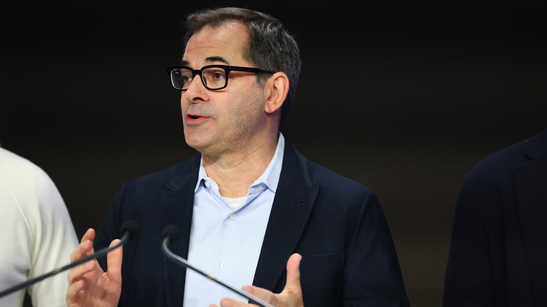 Mike Intrator, co-founder and CEO of CoreWeave, speaks at the Nasdaq headquarters in New York on March 28, 2025.