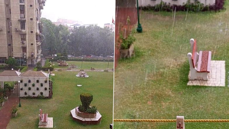 Delhi Rains: Hailstorm Brings Cheer Amid Intense Heatwave; Netizens Share Videos of Rainfall From NCR