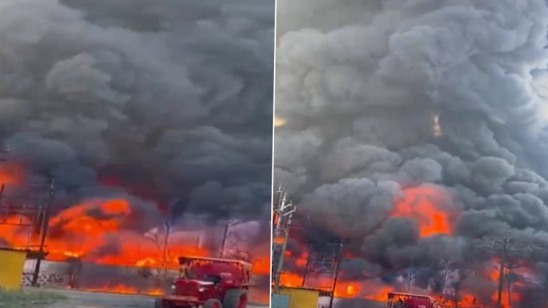 Fire in Nashik Video: Blaze Erupts at Sinnar Industrial Area in Maharashtra, Footage Shows Raging Flames and Thick Cloud of Smoke