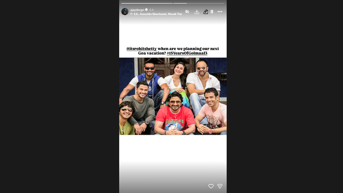 “@itsrohitshetty when are we planning our next Goa vacation?#15YearsOfGolmaal3,” he wrote in the Instagram story, teasing that the team might be finally moving on with the project in the coastal town.