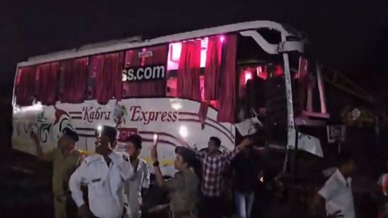 Rajesh Gadhiya, Superintendent of Police, said, “The bus was going from Ahmedabad to Pune in which there were about 23 passengers. The driver of a cement tanker suddenly turned left and hit the bus. Two people have died and several people have been injured. Their treatment is underway. A case will be filed against the tanker driver and further legal action will be taken.” Car Accident Caught on Camera in Nagaur: Uncontrolled SUV Ploughs Into Religious Procession in Rajasthan, Several People Injured; Disturbing Video Surfaces.