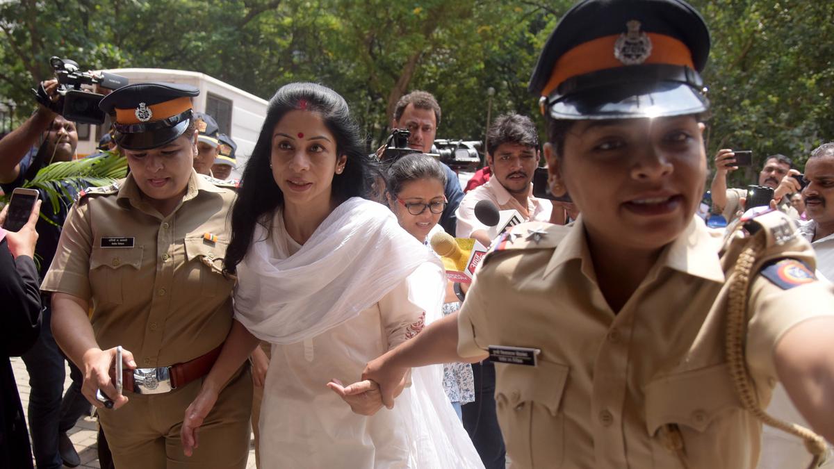 Media maven Indrani Mukerjea, arrested in connection with her daughter Sheena Bora’s murder, is brought to court in Mumbai, 2018.