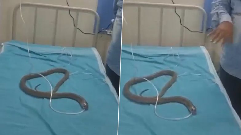 A cobra in Karnataka’s Raichur fainted from phenyl spray and was revived with oxygen. The snake was seen inside an SUV near the Hatti Gold Mine, and some people tried to scare it off with phenyl. The cobra lost consciousness after inhaling the chemical. Following this, the people took the snake to a hospital where it was administered artificial oxygen. The cobra regained consciousness after some time and was released into a forest. A video of the incident has gone viral on social media. Elephant Attack in Karnataka Video: Injured Wild Elephant Attacks Forest Crew Trying to Administer Treatment, Expert Tranquiliser Aane Venkatesh Killed.