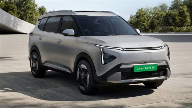New Delhi, July 15: Kia Carens Clavis EV is launched in India. Kia is expanding its electric vehicle lineup in India with the launch of the new Carens Clavis EV. It marks the company’s third electric model in the country, following the launch of Kia EV6 and Kia EV9. The new electric version of the Kia Carens Clavis aims to offer a eco-friendly alternative to its petrol and diesel siblings. Kia Carens Clavis EV price in India is announced, which starts at INR 17,99,000.