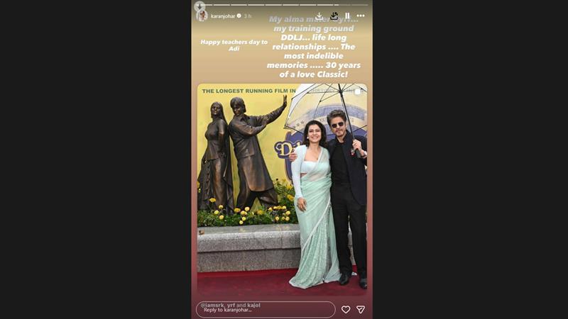 Karan wrote on his Insta Stories, “My alma mater @yrf…my training ground DDLJ…life long relationships….The most indelible momories…..30 years of a love Classic.”