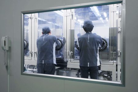 The work is fastidious and time consuming. The bulk of the processes are done through plexiglass glove boxes to maintain ultralow humidity and cleanliness. Because the rooms are so dry, technicians are required to take hydration breaks every two hours.
