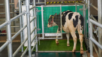 Researchers in Germany successfully trained cows to use a small, fenced-in area with artificial turf flooring as a bathroom stall. This could allow farms to easily capture and treat cow urine, which often pollutes air, soil and water, researchers report online September 13 in Current Biology. Components of that urine, such as nitrogen and phosphorus, could also be used to make fertilizer (SN: 4/6/21).