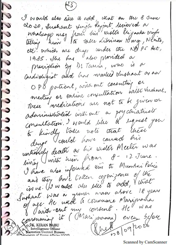 “I would also like to add, that on the 8th June 2020, Sushant Singh Rajput received a WhatsApp message from his sister Priyanka Singh telling him to take Librium 10 mg, Nexito etc. which are drugs under the NDPS Act 1985,” stated Rhea.