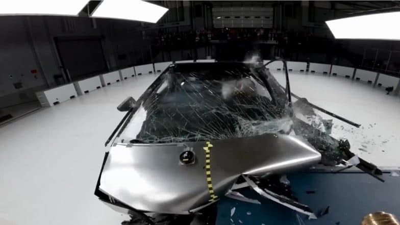 Tesla Cybertruck Crash Test: Tesla’s EV Truck Receives 5-Star Rating From NHTSA With Lowest Overall Probability of Injury and Rollover Risks (Watch IIHS Footage Here)