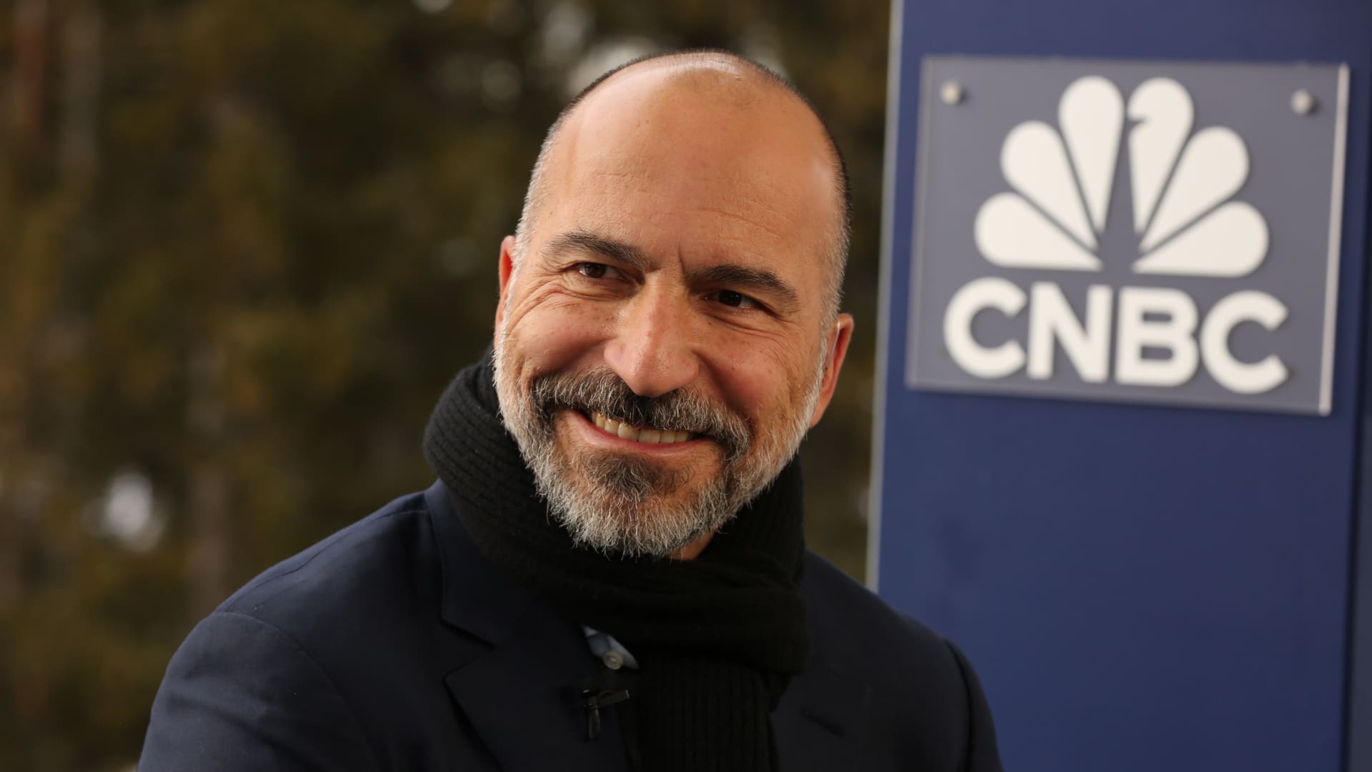 Dara Khosrowshahi, CEO of Uber, speaking on CNBC’s Squawk Box outside the World Economic Forum in Davos, Switzerland on Jan. 22, 2025.