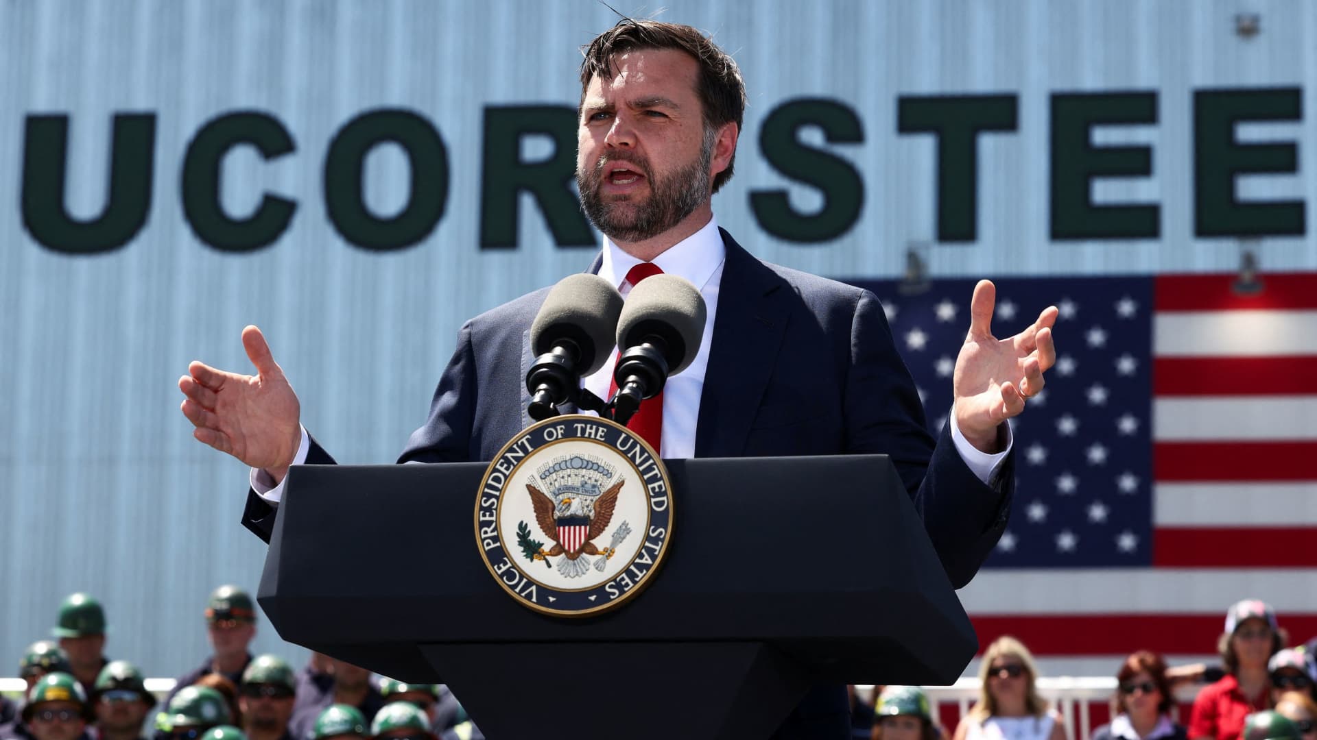 U.S. Vice President JD Vance speaks, during a tour of Nucor Steel Berkeley in Huger, South Carolina, U.S., May 1, 2025.