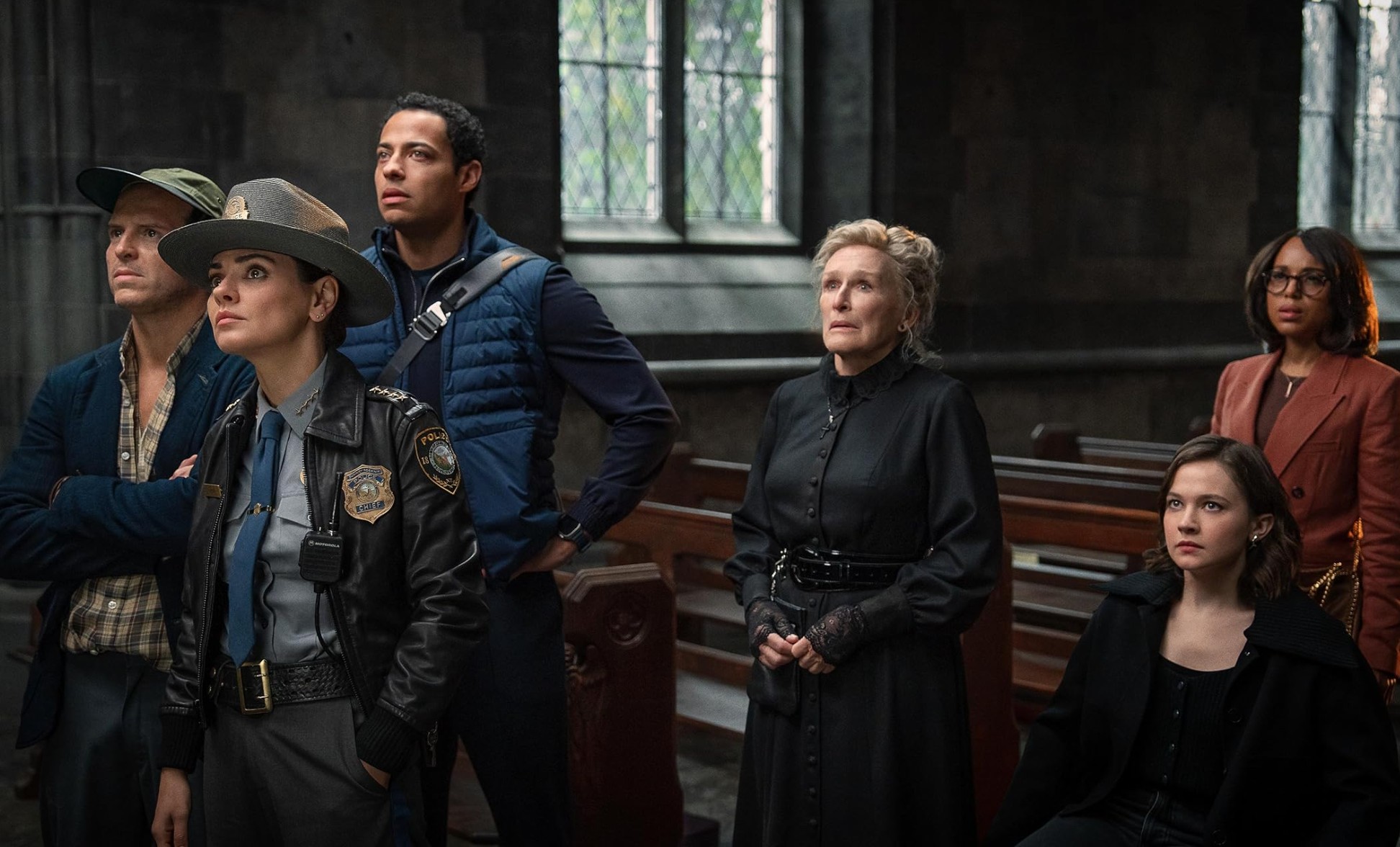 But, in true Johnson fashion, the parish is filled with other possible culprits: Martha Delacroix (Glenn Close), a long-time churchgoer unhealthily fixated on Wicks; the love-struck groundskeeper Samson Holt (Thomas Haden Church); Dr Nat Sharp (Jeremy Renner), whose broken family haunts him; Vera Draven (Kerry Washington) and her reluctant adoptive son Cy (Daryl McCormack), glued to his camera for online validation; Lee Ross (Andrew Scott), a paranoid writer; and Simone Vivane (Cailee Spaeny), a disabled cellist clinging to the hope of a miracle Wicks insinuated he could deliver.
